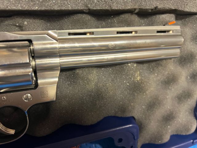 COLT PYTHON CANNA 6 " 357 MAGNUM. USATA PER SOLE 2 SESSIONI DI TIRO. PARI AL NUOVO. CON 2 CUSTODIE IN PLASTICA E LEGNO MASSELLO ORIGINALI COLT E TUTTI GLI ACCESSORI IN DOTAZIONE.