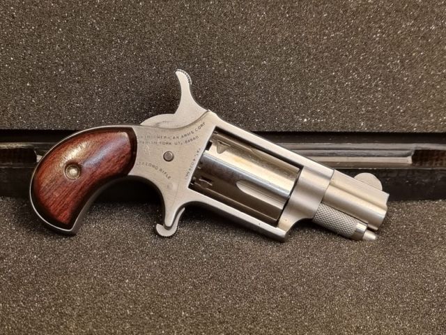 REVOLVER CAL. 22LR, SOLO SA, 5RD, TAMBURO NON BASCULANTE, SENZA GUARDIA GRILLETTO, ESTREMAMENTE PICCOLO ED OCCULTABILE, NASCE NEGLI USA COME ARMA DI RISERVA. MOLTO BEN COSTRUITO, TUTTO ACCIAIO INOX, LA SUA DESTINAZIONE E' LA DIFESA A BREVISSIMA DISTANZA. SEMINUOVO.