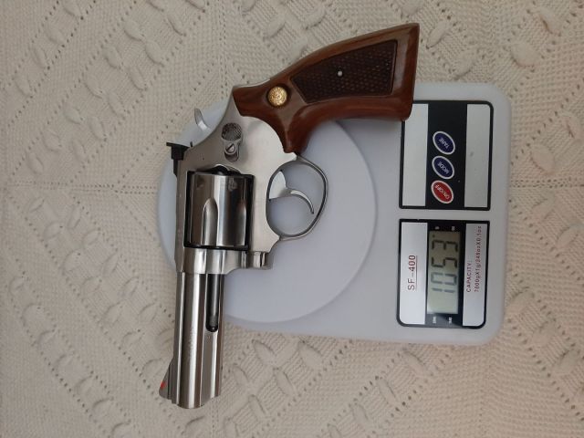 Rivoltella in eccellenti condizioni complessive, senza alcun danno strutturale ed estetico, usata poco. Specifiche tecniche: canna da 4" (101mm); lunghezza complessiva 9 3/8" (238mm); peso 1055g; mirino anteriore a rampa dentellata con punto di mira a inserto color rosso; mirino posteriore a clic micrometrico con regolazione in altezza e derivazione; impugnature in legno venato color rossiccio verniciato lucido, con dentellature ed incavo per caricatore rapido; struttura in acciaio inossidabile e finitura lucida.