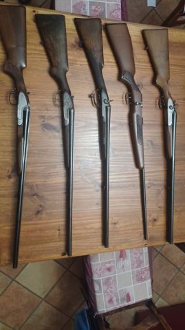 Per cessata attività venatoria nel 2007 cedo in blocco questi 5 fucili ,solo autorizzati e seri. Doppietta Bernardelli Cal 12,astina a coda di castoro,monogrillo,estrattori automatici, sparato 2 cartucce di prova.Doppietta Cal 12 Siace acciaio Breda, cani esterni,tutta incisa,sparato 2 cartucce di prova.Doppietta cani interni cal12 Faverzani ottima. Doppietta Cal 16 cani esterni,canne a tortiglione, apertura sotto il salva grilletto Reelly C e London. Fucile a un colpo, perfetto, sparato 20 cartuccette.