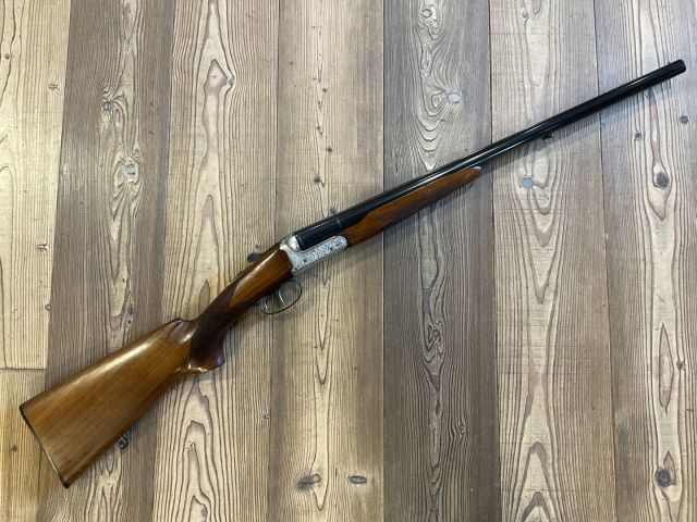Doppietta Zanoletti cal. 12 canne forate 18.5 cm. 60 camerata 70 stozzature 3/4 stelle estrattori manuali bigrillo, piega nasello 45 tallone 55 asta castoro calcio pistola, bascula finemente incisa, piccolo segno di usura sulla prima canna . Arma classificata caccia buone condizioni