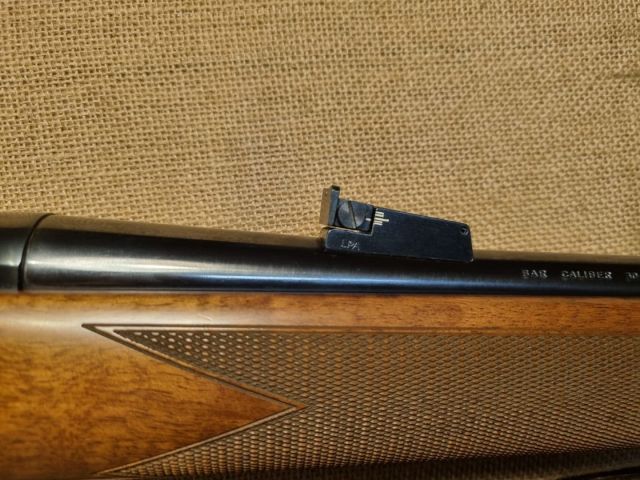 CARABINA SEMIAUTO CAL. 3006, VERIONE SAFARI MADE IN BELGIUM, CARCASSA IN ACCIAIO BRUNITA NERA E INCISA DI FABBRICA, CANNA PERFETTA CM. 58. MIRE REGOLABILI, BASE PER OTTICA MONTATA. OTTIME CONDIZIONI CON MINIMI SEGNI D'USO