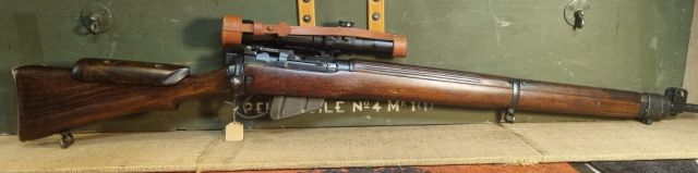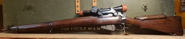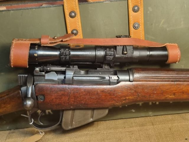 CARABINA CAL.303 MARCATA LONG BRANCH 1944, MONTATA A TERNI CON ATTACCO LATERALE E OTTICA TIPO 32 MK1 PRODOTTA DAL LABORATORIO PRECISIONE ROMA NEL 1951. CANNA PERFETTA DIA 7,68. L'ARMA E' CONTENUTA NELLA SUA CASSETTA MILITARE DI TERNI, DOTATA DI CASSETTA METALLICA PER CONTENERE L'OTTICA E CHIAVE DI REGOLAZIONE DELLA STESSA. CALCIATURA CON MARCHIO FAT QUASI INVISIBILE. ARMA MONOMATRICOLA COMPRESO ATTACCO OTTICA E CALCIATURA. OTTIME CONDIZIONI GENERALI.