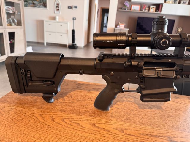 AR10 con canna da 24 pollici in 6.5 creedmore con calcio Magpul, copricanna flottante in alluminio Magpul, scatto Timney triggers alleggerito, bipiede Harris e doppio caricatore in polimero. All’attivo circa 200/250 colpi. PREZZO SENZA OTTICA