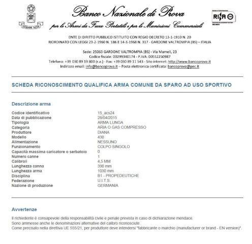 CARABINA Diana 430 STUTZEN 4.5/.177