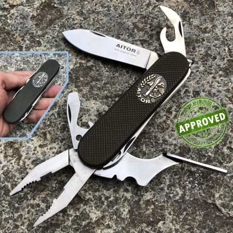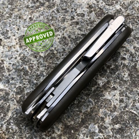 Raro coltello multiuso ritirato da collezione privata - Condizioni pari al nuovo, mai usata - scatola originale - fuori produzione dalla fine degli anni 90 e non più reperibile in commercio. - Controllata e certificata dal nostro laboratorio interno Coltelleria Collini. Utensili: Acciaio Inox e Acciaio Inox 420HC per le lameManicatura: polimeri Funzioni ed Utensili: Pinza regolareTagliacaviColtello PunteruoloApri ScatoleApri BottiglieCacciavite piatto medioCavatappi Produzione: Spagnola