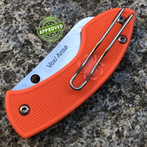 Destinazione d'uso: Sportivo/TatticoTipo di produzione: IndustrialeProduzione Lama: ItaliaLama: in acciaio inox N690CoTrattamento Lama: -Manicatura: FRNLunghezza lama: 60mm.Spessore lama: 2.8mm.Lunghezza chiuso 88mm.Lunghezza totale: 147mm.Spessore da chiuso: -Bilanciatura: -Peso: 54g.Chiusura: privo di blocco lamaClip: amovibile, in acciaio inoxFodero: -Confezione: assenteNote: Design by Vox e Jens Anso