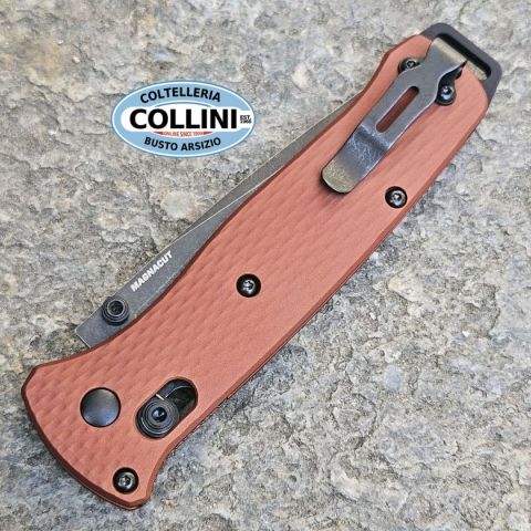 La famiglia di coltelli tattici Bailout è da tempo apprezzata per la sua combinazione di resistenza senza compromessi e struttura sottile ed ultraleggera che la rende uno strumento straordinario sia durante le escursioni che sul lavoro. Il nuovo 537BK-07 Bailout introduce l'acciaio CPM-MagnaCut che offre una maggiore resistenza alla corrosione, con una finitura DLC Battlewash. Insieme alle impugnature in alluminio anodizzato Burnt Copper con texture a diamante e ai componenti black oxide, questo coltello ultraleggero e resistente è pronto per la tua prossima avventura. Destinazione d'uso: Tattico / EDCTipo di produzione: IndustrialePaese di produzione: USALama: in acciaio CPM-MagnaCutFinitura lama: DLC BattleWashImpugnatura: Burnt Copper anodized 6061-T6 aluminum con viteria black oxideLunghezza lama: 86mm.Spessore lama: 2.3mm.Lunghezza chiuso: 119mm.Lunghezza totale: 205mm.Spessore da chiuso: 10.4mmPeso: 76g.Sistema di chiusura: AxisLockClip: Amovibile e reversibile, in a