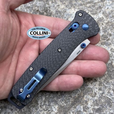 La nuova versione Bailout® 537-09 con impugnatura in fibra di carbonio e lama in M390 rappresenta il perfetto connubio tra leggerezza estrema e prestazioni tattiche elevate. Pensato per chi non accetta compromessi, questo coltello pieghevole sfrutta l’architettura collaudata della serie Bailout / Bugout migliorata con acciai premium, componenti ultraleggeri e dettagli curati per un uso quotidiano e operativo. Ogni elemento è progettato per offrire affidabilità, precisione e comfort anche nelle situazioni più impegnative, permettendoti di affrontare ogni sfida con uno strumento di alto livello. Destinazione d’uso: EDC tattico, impiego militare / professionaleTipo di produzione: Produzione seriale di alta gammaPaese di produzione: Stati Uniti (USA)Lama: Acciaio Bohler / M390, ricavata da grani metallici ultrafiniFinitura lama: Stonewashed (lavata a pietra)Manicatura: Scales in fibra di carbonio con dettagli hardware bluLunghezza lama: 3,38″ (≈ 86 mm)Spessore lama: 0,09″ (≈ 2,3 mm)Lunghez