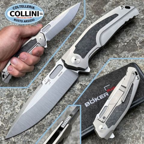 Coltello in edizione limitata 2020, disegnato da Lucas Burnley. Destinazione d'uso: CollezioneTipo di produzione: IndustrialePaese di produzione: TaiwanLama: in acciaio M390Trattamento lama: SatinManicatura: titanio con inserto in fibra di carbonioLunghezza lama: 100mm.Spessore lama: 3.9mm.Lunghezza da chiuso: 130mm.Lunghezza totale: 230mm.Peso: 173g.Clip: in titanioChiusura: Frame LockConfezione: scatola di cartone con loghi Boker Plus, astuccio in Nylon con zipNote: Design by Burnley