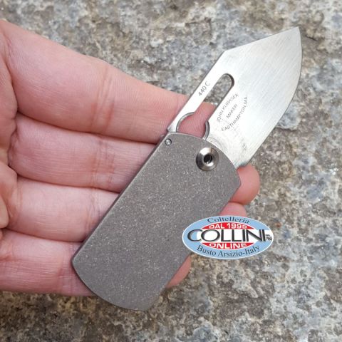 Destinazione d'uso: EDC / da colloTipo di produzione: IndustrialePaese di produzione: TaiwanLama: in acciaio inox 440CTrattamento lama: satinataManicatura: in titanioLunghezza lama: 43mm.Spessore lama: 1.7mm.Lunghezza totale: 96mm.Peso: 24g.Clip: - Chiusura: button lock magnetico; blocca sia in apertura che in chiusuraConfezione: scatola di cartone con loghi Boker PlusNote: Design by John Kubasek - fornito con catenina da collo