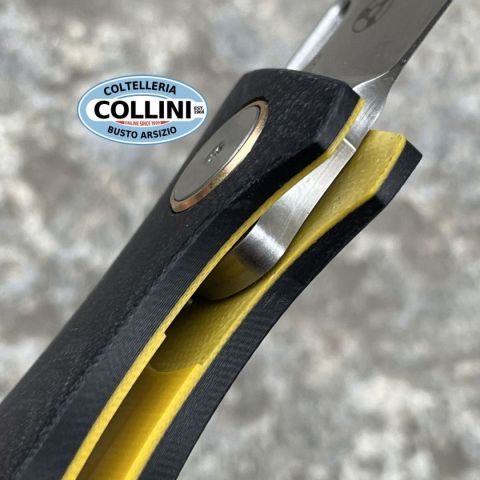 Con il Boker Plus Epicenter Backlock, il designer statunitense Todd Rexford ha creato un coltello di proporzioni impressionanti che combina le forze incontenibili della natura e scatena un tremore incontrollabile nel centro delle emozioni degli appassionati di coltelli. Grazie alla combinazione cromatica gialla e nera del manico sagomato interamente in G10, l'Epicenter si colloca proprio in cima alla scala Richter. Solo il robusto backlock riesce a domare la forza elementare che riesce a generare questo coltello da tasca, bloccando in modo sicuro la lama. Il foro per il cordino in ottone e l'anello sulla vite dell'asse della lama aumentano il fascino di questo fenomeno naturale e fanno inevitabilmente tremare le mani. Destinazione d'uso: SportivoTipo di produzione: IndustrialePaese di produzione: TaiwanLama: in acciaio D2Trattamento lama: SatinaturaManicatura: G10Lunghezza lama: 88mm.Spessore lama: 3.7mm.Lunghezza da chiuso: 120mm.Lunghezza totale: 210mm.Peso: 130g.Clip: in acci