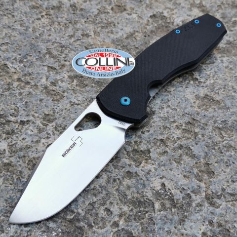 Destinazione d'uso: SportivoTipo di produzione: IndustrialePaese di produzione: TaiwanLama: in acciaio D2Trattamento lama: SatinManicatura: G10 ed Acciaio InoxLunghezza lama: 85mm.Spessore lama: 3.9mm.Lunghezza da chiuso: 117mm.Lunghezza totale: 202mm.Peso: 159g.Clip: in acciaio inox, con anodizzazione azzurra Chiusura: Frame LockConfezione: scatola di cartone con loghi Boker Plus, astuccio in Nylon con zipNote: Design by Jesper Voxnaes