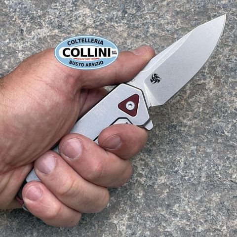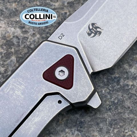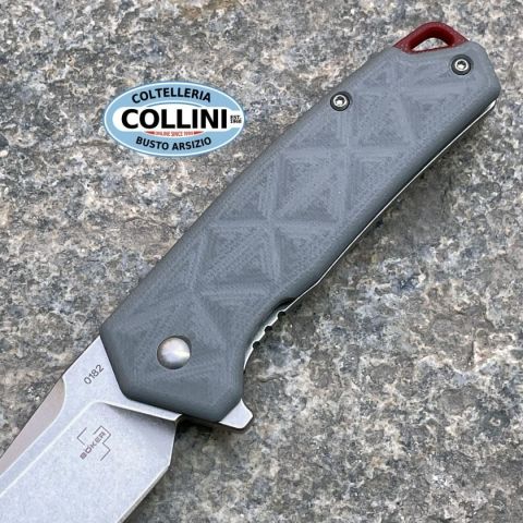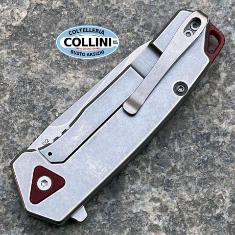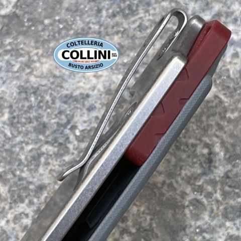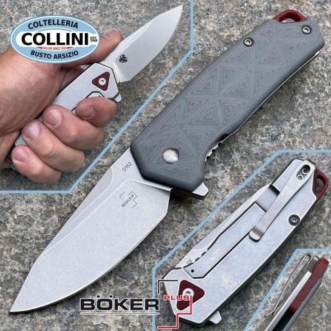 Efficienza rigorosa o dinamicità flessibile? – Una domanda che non si pone nemmeno per il Böker Plus Gemtek di Alessandra de Santis. Può fare entrambe le cose; senza parlare delle sfumature intermedie. La designer di Hydra Design è conosciuta per le sue creazioni piene di temperamento con funzionalità massima. Il Gemtek si inserisce con sicurezza in questa serie e si presenta come un coltello pieghevole con blocco Frame Lock, dotato di una lama Modified-Droppoint in acciaio D2 ad alta capacità di taglio, che si apre con un Flipper e impressiona con la sua finitura stonewash e una falsa lama decorativa. La facciata del manico è realizzata in G10 grigio, fornito di una discreta texture triangolare per una presa ottimale. Elementi accuratamente bilanciati come gli spaziatori rossi con un passante integrato e un triangolo in G10 sul retro, che riprende la struttura della facciata del manico, completano elegantemente l'aspetto del coltello da tasca. La clip Tip-Up (r) consente un porto prof