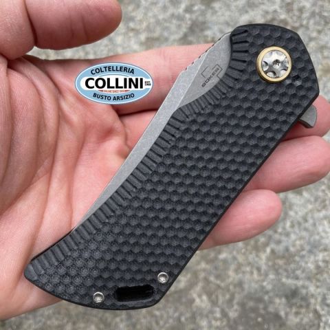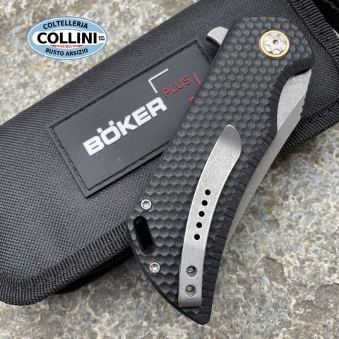 Destinazione d'uso: Sportivo/collezioneTipo di produzione: IndustrialePaese di produzione: TaiwanLama: in acciaio D2Trattamento lama: stonewashManicatura: in G10Lunghezza lama: 89mm.Spessore lama: 4mm.Lunghezza totale: 205mm.Peso: 148g.Clip: in acciaio inoxChiusura: liner lockConfezione: scatola di cartone con loghi Boker Plus, astuccio in nylon con zipNote: sistema di apertura flipper su cuscinetti a sfera