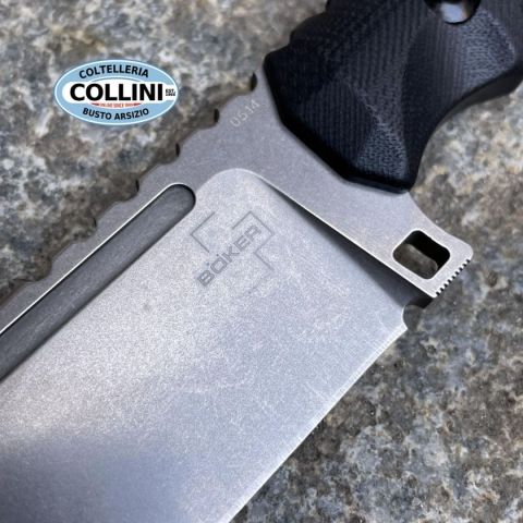 Destinazione d'uso: UtilityTipo di produzione: IndustrialePaese di produzione: CinaLama: ful tang in acciaio D2Finitura lama: StonewashedManicatura: G10Lunghezza lama: 106mm.Spessore lama: 4.7mm.Lunghezza totale: 215mm.Peso: 181g.Fodero: in Kydex, con attacco tipo Tek-LokConfezione: scatola di cartone con loghi Boker PlusNote: Design by Midgards Messer
