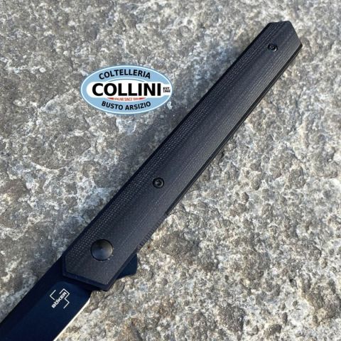 Destinazione d'uso: SportivoTipo di produzione: IndustrialePaese di produzione: TaiwanLama: in acciaio inox VG10Trattamento lama: black coatingManicatura: liners in acciaio e guancette in G10Lunghezza lama: 90mm.Spessore lama: 2.5mm.Lunghezza totale: 213mm.Peso: 82g.Clip: amovibile, in acciaio inoxChiusura: liner lockConfezione: scatola di cartone con loghi Boker Plus, astuccio in nylon con zip Note: Design by Lucas Burnley - sistema di apertura flipper su cuscinetti a sfera