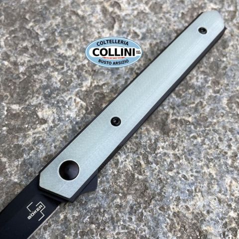 Destinazione d'uso: SportivoTipo di produzione: IndustrialePaese di produzione: TaiwanLama: in acciaio inox VG10Trattamento lama: black coatingManicatura: liners in acciaio e guancette in G10 giadaLunghezza lama: 78mm.Spessore lama: 2.5mm.Lunghezza totale: 183mm.Peso: 60g.Clip: amovibile, in acciaio inoxChiusura: liner lockConfezione: scatola di cartone con loghi Boker Plus, astuccio in nylon con zip Note: Design by Lucas Burnley - sistema di apertura flipper su cuscinetti a sfera