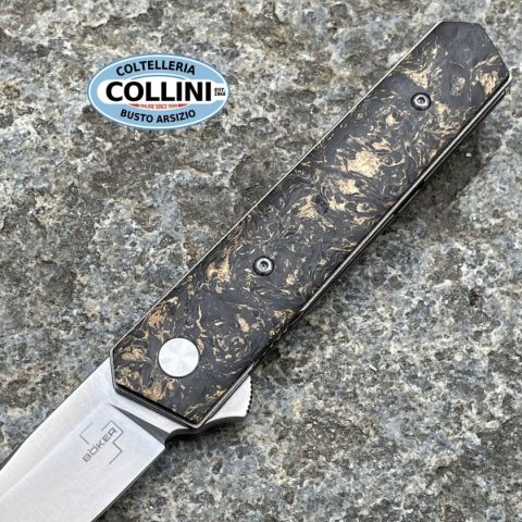 Destinazione d'uso: Sportivo/collezioneTipo di produzione: IndustrialePaese di produzione: TaiwanLama: in acciaio inox M390Trattamento lama: satinaturaManicatura: in titanio e fibra di carbonio e rameLunghezza lama: 76mm.Spessore lama: 3.2mm.Lunghezza totale: 183mm.Peso: 94g.Clip: in titanioChiusura: frame lockConfezione: scatola di cartone con loghi Boker Plus, astuccio in nylon con zipNote: Design by Lucas Burnley - sistema di apertura flipper su cuscinetti a sfera