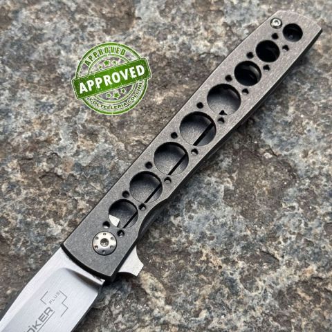 * Tipologia: Precedentemente acquistato ed utilizzato * Condizioni: pari al nuovo* Reperibile in commercio: si* Affilatura: di fabbrica* Segni su lama: No* Segni su impugnatura: No* Confezione: Si* Fodero: /* Manuali, Certificati e Garanzie: si* Controllato e Certificato dal nostro laboratorio interno Destinazione d'uso: EDC / SportivoTipo di produzione: IndustrialePaese di produzione: TaiwanLama: in acciaio inox VG-10Trattamento lama: blackwashManicatura: titanioLunghezza lama: 47mm.Spessore lama: 1.7mm.Lunghezza totale: 115mm.Peso: 31g.Clip: in titanioChiusura: Frame lockConfezione: scatola di cartone con loghi Boker PlusNote: Design by Brad Zinker Sebbene negli anni abbiamo visto molti prodotti della Boker, i fabbricanti di coltelli pieni di risorse continuano a trovare modi per sorprenderci. Ad esempio, Brad Zinker dalla Florida con il suo Urban Trapper, uno dei framelock in titanio con il profilo più sottile che abbiamo m