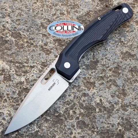 Destinazione d'uso: Tattico / SportivoTipo di produzione: IndustrialePaese di produzione: TaiwanLama: in acciaio D2Trattamento lama: stonewashManicatura: G10Lunghezza lama: 94mm.Spessore lama: 3.5mm.Lunghezza totale: 225mm.Peso: 132g.Clip: in acciaio inox, di tipo deep pocket, amovibile e reversibile Chiusura: SubFrame Lock in acciaio inoxConfezione: scatola di cartone con loghi Boker PlusNote: Design by Boris Manasherov - sistema di apertura Carson Flipper con movimento su cuscinetti a sfera