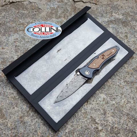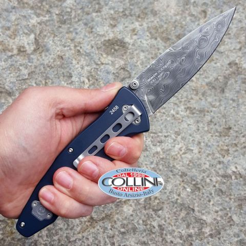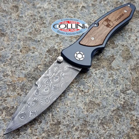 Destinazione d'uso: CollezioneTipo di produzione: IndustrialePaese di produzione: GermaniaLama: in acciaio damasco inox a 300 strati, proveniente dalla corazzata tedesca Tirpitz, affondata il 12 novembre 1944Trattamento lama: -Manicatura: in alluminio al silicio AlMgSi1 con anodizzazione in colore blu navy ed inserto in noce tedescoLunghezza lama: 100mm.Spessore lama: 3.5mm.Lunghezza totale: 230mm.Peso: 165g.Clip: reversibile ed amovibile, in acciaio inox Chiusura: Liner LockConfezione: cofanetto espositivo in PVC che lascia "galleggiare" il coltello al suo interno, rendendolo visibile da ogni latoNote: Certificato di Garanzia - Astuccio in cotone rosso - Esemplare a tiratura limitata numerato sull'impugnatura La corazzata Tirpitz - Classe Bismarck - 1939/1944 La Tirpitz fu una nave da battaglia della Kriegsmarine tedesca, seconda e ultima unità della Classe Bismarck. Fu concepita, insieme alla gemella Bismarck, per essere la punta di diamante dell