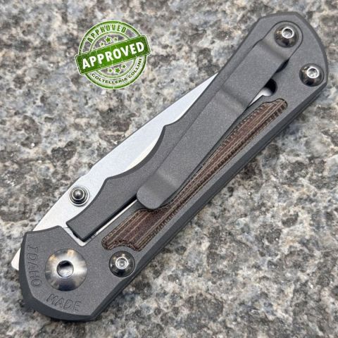 COLTELLO RITIRATO DA COLLEZIONE PRIVATA* Provenienza: Ritirato da un privato, precedentemente acquistato* Condizioni: Globalmente in ottime condizioni, qualche impercettibile segno sull'impugnatura in titanio, manca il lanyard posteriore in paracord* Reperibile in commercio: Fuori produzione, sostituito da differenti varianti di acciaio* Affilatura: Di fabbrica* Segni su lama: Nessuno* Segni su impugnatura: qualche impercettibile segno sull'impugnatura in titanio, manca il lanyard posteriore in paracord* Scatola: Presente* Fodero: -* Manuali, Certificati e Garanzie: Presenti* Controllato e Certificato dal nostro laboratorio interno Destinazione d'uso: Sportivo / Collezione Tipo di produzione: MidtechPaese di produzione: USALama: In acciaio inox CPM-S45VN a 60/62HRCFinitura lama: stonewashedImpugnatura: titanio 6Al4V con inserti in micarta canvasLunghezza lama: 70mm.Spessore lama: 3.5mm.Lunghezza chiuso: 95mm.Lunghezza totale: 165mm.Spessore da chiuso: 17mm.Peso: 78g.Chiusura: Frame Loc
