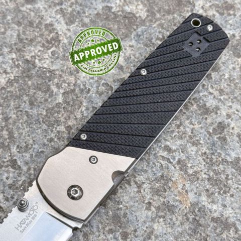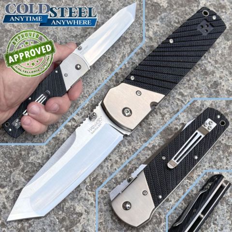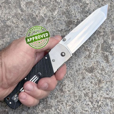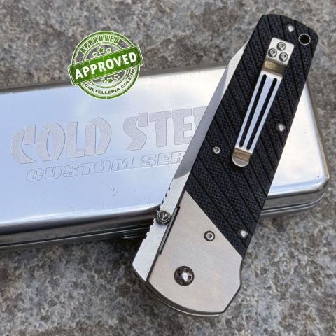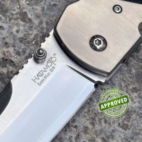 COLTELLO RITIRATO DA COLLEZIONE PRIVATA* Provenienza: Ritirato da un privato, precedentemente acquistato* Condizioni: Globalmente in ottime condizioni, qualche impercettibile graffio sui bolsters in titanio e un paio di piccoli graffi sulla satinatura della lama* Reperibile in commercio: Fuori produzione* Affilatura: Di fabbrica* Segni su lama: un paio di piccoli graffi* Segni su impugnatura: qualche impercettibile graffio sui bolsters in titanio* Scatola: Presente e completa* Fodero: -* Manuali, Certificati e Garanzie: -* Controllato e Certificato dal nostro laboratorio interno Il Cold Steel Hatamoto Custom Series è un coltello pieghevole di alta gamma nato per chi cerca eccellenza, performance e design ispirato alla tradizione samurai. Prodotto in edizione limitata tra il 2005 e il 2010, questo modello unisce l’artigianato giapponese alla robustezza americana con una lama San Mai III, famosa per la sua affilatura straordinaria e la durabilità superiore. Il profilo tanto potenziato ga