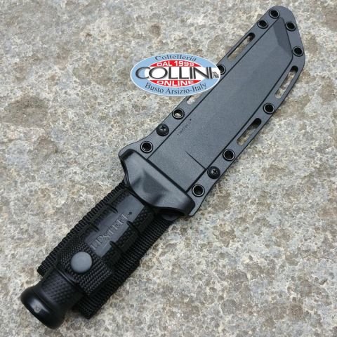 Destinazione d'uso: Tattico Tipo di produzione: IndustrialePaese di produzione: TaiwanLama: in acciaio D2Trattamento lama: Black Powder CoatingImpugnatura: in polimero Griv-Ex, con pomolo in acciaioLunghezza lama: 171mm.Spessore lama: 5mm.Lunghezza totale: 298mm.Spessore da chiuso: 13mm.Bilanciatura: ArretrataPeso: 332g.Fodero: Secure-Ex in ABS, da cosciaConfezione: Scatola di cartone con loghi Cold SteelNote: -