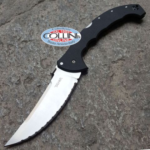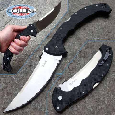 Destinazione d'uso: Sportivo / Tattico Tipo di produzione: Industriale Produzione Lama: Taiwan Lama: in acciaio inox CTS-XHP 60/61HRC Trattamento lama: Satinatura Manicatura: G10 Lunghezza lama: 139mm. Spessore lama: 4mm. Lunghezza chiuso: 190mm. Lunghezza totale: 324mm. Spessore da chiuso: 13mm. Peso: 234g. Chiusura: Tri-Ad Lock Clip: amovibile e reversibile, in acciaio inox Confezione: scatola di cartone con loghi Cold Steel Note: Design by Andrew Demko