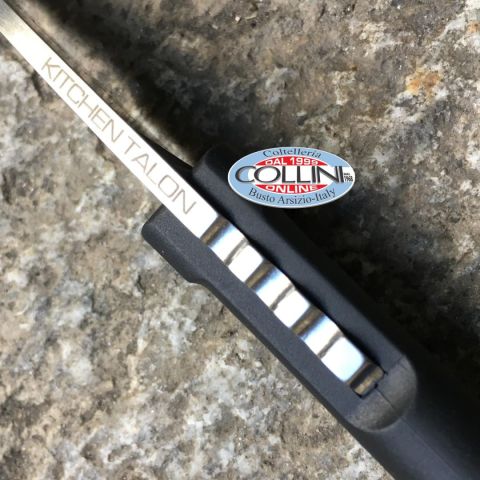 LA COLTELLERIA TATTICA ENTRA IN CUCINA!Extrema Ratio si è dilettata ad applicare i rigidi standard militari ad una serie di coltelli professionali da cucina.L’acciaio della lama è il collaudato BOHLER N690, un acciaio arricchito con cromo, vanadio, molibdeno e cobalto, temprato alla durezza di 58HRC. L’impugnatura è realizzata in forprene, un elastomero che rientra nello “standard NATO” per resistenza a condizioni estreme, ed è completamente smontabile dalla lama; ciò rende possibile un’accurata pulizia e manutenzione del coltello. Set 6 pezzi - Kitchen Talon è un nuovo coltello da tavola che Extrema Ratio ha pensato per l'uso quotidiano, l'impugnatura in tecnopolimeri specifica militare contiene una lama realizzata in puro stile Extrema Ratio resistente, ergonomica ed estremamente efficace. Disponibile in confezione singola in scatola di cartone o in cofanetto di cartone da sei pezzi. Destinazione d'uso: Carne cru