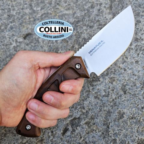 Precisione Naturale - Un coltello che diventa estensione della mano e dello spirito.Il VENATUS S Nitrogen Satin con manico in legno di noce unisce performance e tradizione. La sua lama satinata da 9 cm in acciaio Nitrogen è ideale per operazioni di dettaglio: tagli netti, gesti controllati, massima sensibilità. L’impugnatura in noce aggiunge un tocco caldo e autentico, per chi cerca una connessione profonda con l’essenza della caccia. Approfondimento tecnico sugli acciai addizionati di azotoGli acciai "nitrogen" o addizionati all'azoto, sono leghe in cui l'azoto viene utilizzato come elemento di lega al posto, o in aggiunta, del carbonio. L’azoto, pur essendo meno efficace del carbonio nell’indurire la matrice martensitica, presenta il vantaggio di formare in misura molto minore composti stabili con il cromo. Questo consente di mantenere una maggiore quantità di cromo in soluzione solida, migliorando la resistenza alla corrosione. Inoltre, l’azoto contribuisce alla durezza e