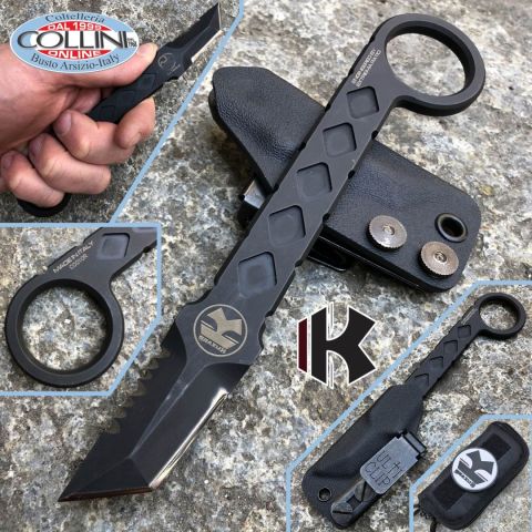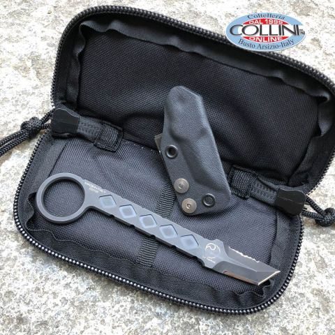 Primo progetto nato con il brand della Coltelleria Collini KNIVES.IT e che vede nella sua realizzazione finale la collaborazione di più partners. Collection Edition Al fine di ottenere un tool di altissimo livello qualitativo, abbiamo affidato la produzione e l'ingegnerizzazione ad Extrema Ratio, il designer al belga Laurent LoTactical, la realizzazione dei due foderi in kydex (uno deep carry e uno più compatto) costruiti artigianalmente dal knifemaker Simone Tonolli, mentre per la clip abbiamo optato per l'efficiente qualità dei prodotti dell'americana ULTICLIP. Destinazione d'uso: Neck Knife / Collection knife / Tactical knife Tipo di produzione: IndustrialeProduzione Lama: ItaliaLama: in acciaio inox N690Co 58/60HRCTrattamento Lama: Black PVD cat. MIL-C-13924Manicatura: acciaio inox N690Co 58/60HRCLunghezza lama: 40mm.Spessore lama: 5.5mm.Lunghezza totale: 166mm.Peso: 86g.Fodero: due foderi in Kydex realizzati artig