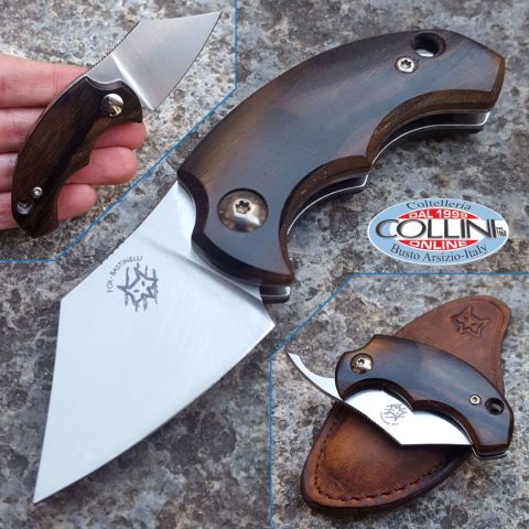 Destinazione d'uso: Sportivo Tipo di produzione: IndustrialePaese di produzione: ItaliaLama: in acciaio inox N690Trattamento lama: SatinaturaManicatura: Legno di ZiricoteLunghezza lama: 47mm.Spessore lama: 3mm.Lunghezza chiuso: 85mm.Lunghezza totale: 105mm.Spessore da chiuso: 14mmPeso: 50g.Chiusura: Slipjoint - privo di bloccoClip: AssenteFodero: tasca di cuoioConfezione: Scatola di cartone con loghi Fox Knives Note: Design by Bastinelli Knives