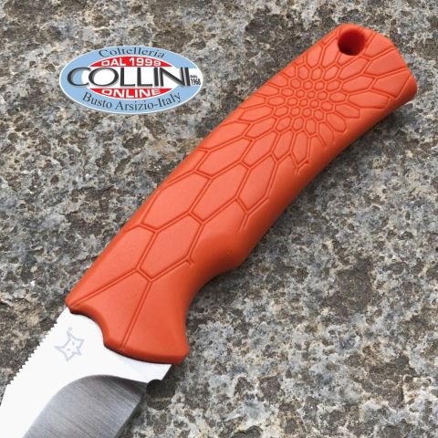 Destinazione d'uso: Caccia / Sport Tipo di produzione: IndustrialePaese di produzione: Maniago - ItaliaLama: in acciaio inox Becut 57/58HRC con elevatissima resistenza ad ossidazione e corrosioneFinitura lama: StonewashedManicatura: PP+TPE (polipropilene + termogomma)Lunghezza lama: 100mm.Spessore lama: 4mm.Lunghezza totale: 225mm.Peso: 145g.Fodero: in nylon con inserto in cuoio, da cintura, porto verticaleConfezione: Scatola di cartone con loghi Fox Knives Note: Design by Jesper Voxnaes