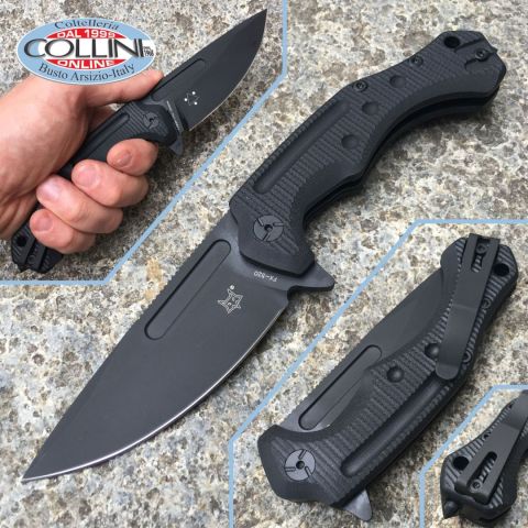 Destinazione d'uso: Sportivo / Tattico Tipo di produzione: IndustrialeProduzione Lama: ItaliaLama: in acciaio inox N690Trattamento Lama: Black Cerakote, rivestimento a base di NANO-CERAMICA molto resistente alle abrasioni, corrosioni, usura ed all'acquaManicatura: G-10Lunghezza lama: 90mm.Spessore lama: 4mm.Lunghezza chiuso: 126mm.Lunghezza totale: 220mm.Spessore da chiuso: 16mmPeso: 188g.Chiusura: Liner LockClip: Amovibile e reversibile, in acciaio inoxFodero: astuccio in cordura con zipConfezione: Scatola di cartone con loghi Fox Knives Note: Design by Boris Manasherov