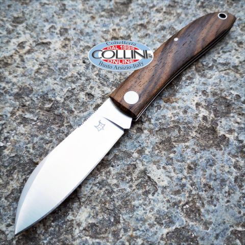 Destinazione d'uso: EDC/Gentleman Tipo di produzione: IndustrialePaese di produzione: ItaliaLama: in acciaio inox M390 59/60HRCTrattamento lama: SatinaturaManicatura: Ziricote WoodLunghezza lama: 70mm.Spessore lama: 3mm.Lunghezza chiuso: 85m.Lunghezza totale: 155mm.Spessore da chiuso: 8.8mmPeso: 45g.Chiusura: SlipJoint (senza blocco lama)Clip: -Fodero: Bustina in cuoio con loghi Fox KnivesConfezione: Scatola di cartone con loghi Fox Knives