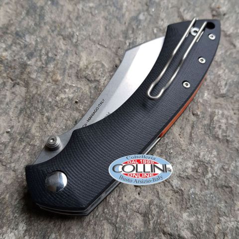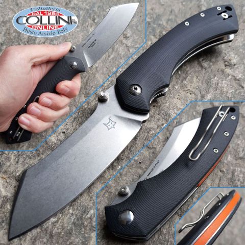 Destinazione d'uso: sportivo Tipo di produzione: IndustrialePaese di produzione: ItaliaLama: in acciaio inox N690 59/60HRCTrattamento lama: stonewashedManicatura: G10 con cartelle in acciaio inoxLunghezza lama: 90mm.Spessore lama: 4mm.Lunghezza chiuso: 123mm.Lunghezza totale: 210mm.Spessore da chiuso: 18mmPeso: 160g.Chiusura: LinerLockClip: in acciaio inox, amovibile e reversibileFodero: astuccio in nylon con zipConfezione: scatola di cartone con loghi Fox Knives Note: Design by Kmrj Kmaxrom