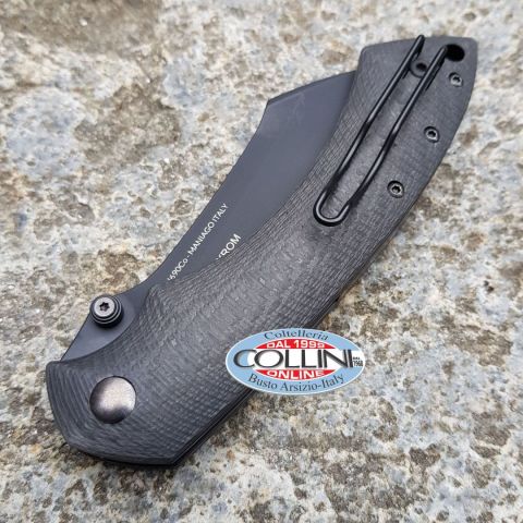 Destinazione d'uso: sportivo Tipo di produzione: IndustrialePaese di produzione: ItaliaLama: in acciaio inox N690 59/60HRCTrattamento lama: black idrogliderManicatura: Fibra di Carbonio con cartelle in acciaio inoxLunghezza lama: 90mm.Spessore lama: 4mm.Lunghezza chiuso: 123mm.Lunghezza totale: 210mm.Spessore da chiuso: 18mmPeso: 160g.Chiusura: LinerLockClip: in acciaio inox, amovibile e reversibileFodero: astuccio in nylon con zipConfezione: scatola di cartone con loghi Fox Knives Note: Design by Kmrj Kmaxrom