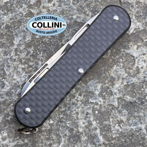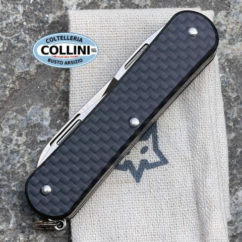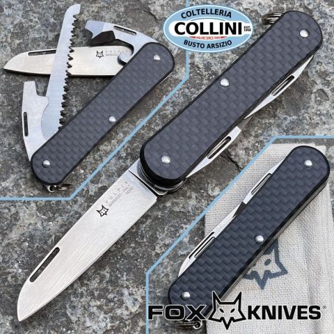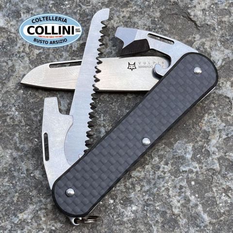 La nuova serie Vulpis di Fox Knives vuole farvi innamorare della tecnologia e dell’innovazione produttiva Made in Maniago con il nuovo multiuso piccolo e versatile. Destinazione d'uso: EDC Tipo di produzione: IndustrialePaese di produzione: ItaliaLama: in acciaio inox M390 59/60HRCFinitura lama: StonewashedManicatura: Fibra di CarbonioLunghezza lama: 55mm.Spessore lama: 2mm.Lunghezza chiuso: 63m.Lunghezza totale: 135mm.Spessore da chiuso: 13mm.Peso: 47g.Chiusura: SlipJoint (senza blocco lama)Clip: -Fodero: -Confezione: Scatola di cartone con loghi Vulpis / Fox Knives UTENSILI INCLUSI:* Lama* Sega per legno* Cacciavite piatto largo* Cacciavite piatto medio* Leva capsule* Apri scatole