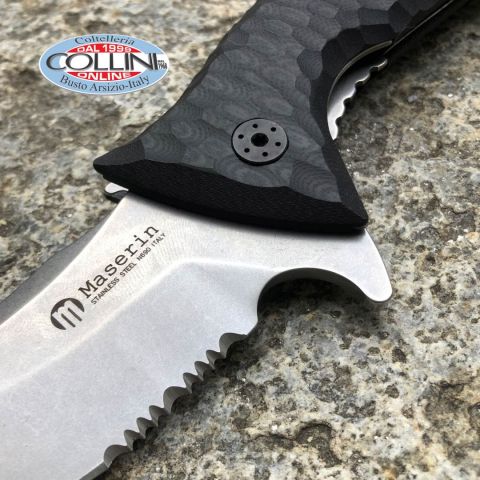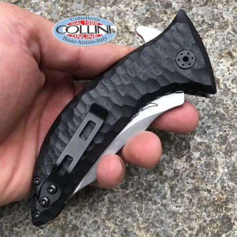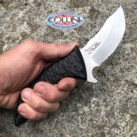 Continua la collaborazione con Alessandro Zanin che ha pensato ad un coltello speciale, Gost Tactical Folder. Un folder leggero ma robusto, adatto a qualsiasi utilizzo, ma con una vocazione particolare per il CQB – CQC.L'utilizzo dei migliori materiali ne garantisce una eccellente maneggevolezza e agilità, l'ottimo bilanciamento e lo studio ergonomico dell'impugnatura conferiscono un grip ideale con ogni presa.La potente lama infonde sicurezza e robustezza. Finalmente il coltello si adegua alla mano e non viceversa, consentendo così movimento e fluidità. Destinazione d'uso: Tattico / Sportivo Tipo di produzione: Industriale Paese di produzione: Italia Lama: acciaio inox N690Co 58HRC Trattamento lama: Stonewashed Impugnatura: G10 Lunghezza lama: 85mm. Spessore lama: 3.2mm. Lunghezza chiuso: 140mm. Lunghezza totale: 220mm. Spessore da chiuso: 16.4mm.Peso: 225g. Apertura: sistema Carson Flipper Washers: in acciaio, con cuscinetti a sfera Chiusura: