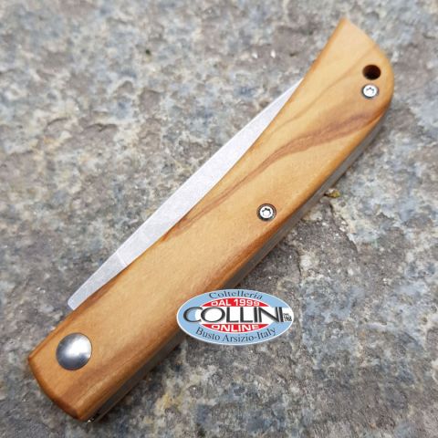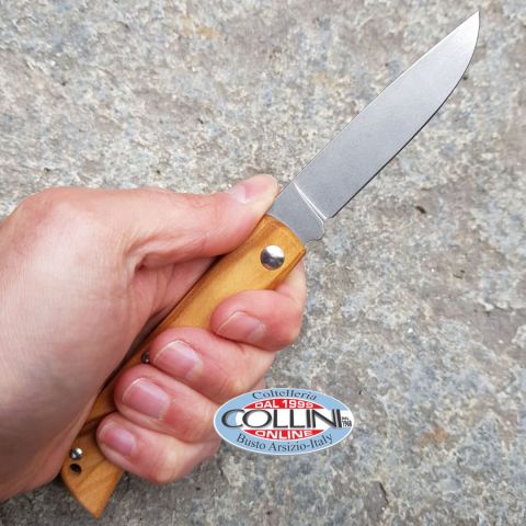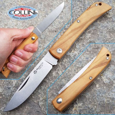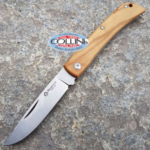 Destinazione d'uso: Sportivo Tipo di produzione: Industriale Paese di produzione: Italia Lama: in acciaio semi-carbonioso D2 Trattamento lama: Stonewashed Impugnatura: Legno di Olivo Lunghezza lama: 80mm. Spessore lama: 2mm. Lunghezza chiuso: 105mm. Lunghezza totale: 185mm. Spessore da chiuso: 13mm.Peso: 70g. Apertura: a due maniChiusura: slipjoint - a molla semplice Clip: - Fodero: - Confezione: Scatola di cartone con loghi Maserin Note: Ispirato al coltello "Marinera", tipico temperino d'epoca della città di Maniago