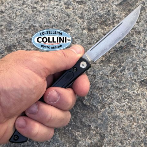 Eleganza Giapponese in Forma Compatta The Executive è un coltello pieghevole che fonde l’estetica tradizionale giapponese con un design moderno ed essenziale. Pensato come un raffinato folding steak knife, è l’accessorio ideale per chi cerca un coltello personale elegante e funzionale. Prodotto a Seki, in Giappone, da Mcusta, questo modello unisce tecnologie moderne e maestria artigianale per offrire una qualità da coltello custom in una produzione di serie. La lama in damasco con anima in acciaio VG-10 garantisce prestazioni eccellenti, mentre le guancette in alluminio anodizzato nero con inserti in micarta nera donano un tocco di classe.Il meccanismo slipjoint innovativo offre una resistenza progressiva con fermo a lama chiusa, a metà corsa e completamente aperta. Lungo 11,6 cm da chiuso, leggero e sottile, viene fornito con elegante astuccio da tasca in pelle nera. Destinazione d'uso: bistecca / cibo / sportivoTipo di produzione: MidTechPaese di produzione: GiapponeLama: in d