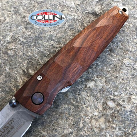 La Coltelleria Collini è distributore ufficiale per l’Italia dei coltelli giapponesi MCUSTA Destinazione d'uso: sportivo/collezioneTipo di produzione: taglio industriale - montaggio e finiture artigianaliLama: in acciaio SanMai con tagliente in inox VG-10 a 59/60HRC e guance esterne in damasco al nickel a 33 stratiProduzione Lama: JapanManicatura: Iron WoodLunghezza lama: 70mm.Spessore della lama: 3mm.Lunghezza chiuso: 95mm.Lunghezza totale: 167mm.Bilanciatura: -Peso: 66g.Chiusura: Liner LockClip: -Fodero: bag in tessutoNote: -