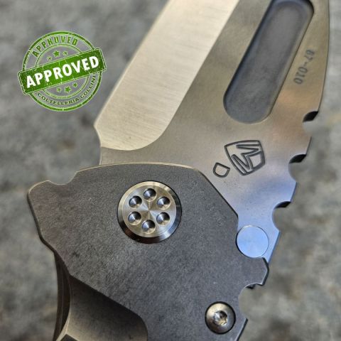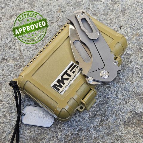 COLTELLO RITIRATO DA COLLEZIONE PRIVATA* Provenienza: Ritirato da un privato, precedentemente acquistato* Condizioni: Coltello del 2018 globalmente in ottime condizioni, mai utilizzato per tagliare, presenta piccolissimi punti di ossidazione sulla lama che non ne compromettono in nessun modo l'utilizzo concreto* Reperibile in commercio: Modello fuori produzione e non più reperibile in commercio* Affilatura: Di fabbrica* Segni su lama: Piccolissimi segni di ossidazione che non ne compromettono l'utilizzo* Segni su impugnatura: Nessuno* Scatola: Presente e completa* Fodero: -* Manuali, Certificati e Garanzie: Presenti* Controllato e Certificato dal nostro laboratorio interno Destinazione d'uso: Tattico/CollezioneTipo di produzione: MidTechPaese di produzione: USALama: in acciaio D2 Finitura Lama: Tumbled & SatinataManicatura: full titanio Lunghezza lama: 95mm.Spessore lama: 5mm.Lunghezza totale: 227mm.Spessore da chiuso: 13mm.Peso: 254g.Chiusura: Frame Lock Clip: amovibil