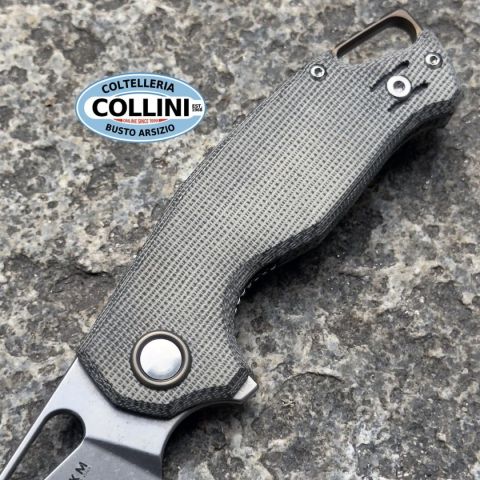 Le forme della lama di questo nuovo chiudibile disegnato da Jesper Voxnaes ricordano i tempi antichi in cui i pirati navigavano per i mari con le loro preziose spade al proprio fianco, maestone e pronte a compiere qualsiasi compito! La lama è in CPM-MagnaCut temprato a 60/62HRC con trattamento stonewashed ed impugnatura in micarta per coniugare grip ad estetica.   Destinazione d'uso: Sportivo Tipo di produzione: IndustrialePaese di produzione: ItaliaLama: in acciaio CPM-MagnaCut Trattamento lama: StonewashedManicatura: micarta, con liners annegati in acciaio inox e spaziatore in titanio anodizzatoLunghezza lama: 62mm.Spessore lama: 3.2mm.Lunghezza chiuso: 106mm.Lunghezza totale: 175mm.Spessore da chiuso: 13mmPeso: 104g.Chiusura: LinerLockClip: in acciaio inox, amovibile e reversibileFodero: astuccio in nylon con zipConfezione: scatola di cartone con loghi MKMNote: Design by Jesper VOX Voxnaes