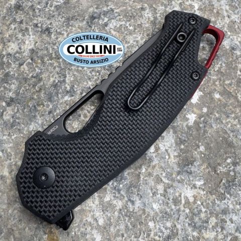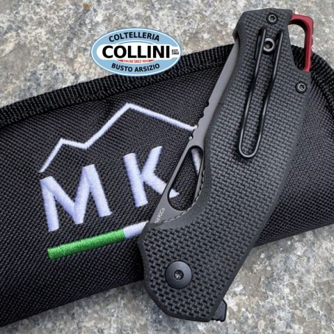 Le forme della lama di questo nuovo chiudibile disegnato da Jesper Voxnaes ricordano i tempi antichi in cui i pirati navigavano per i mari con le loro preziose spade al proprio fianco, maestone e pronte a compiere qualsiasi compito! La lama è in BOHLER N690Co con copertura nera Black Top Shield ed impugnatura in G10 per il miglior grip possibile. Destinazione d'uso: Sportivo Tipo di produzione: IndustrialePaese di produzione: ItaliaLama: in acciaio inox N690Co 58/60HRCTrattamento lama: Black Top ShieldManicatura: G10, con liners annegati in acciaio inox e spaziatore in alluminio anodizzatoLunghezza lama: 62mm.Spessore lama: 3.2mm.Lunghezza chiuso: 106mm.Lunghezza totale: 175mm.Spessore da chiuso: 13mmPeso: 100g.Chiusura: LinerLockClip: in acciaio inox, amovibile e reversibileFodero: astuccio in nylon con zipConfezione: scatola di cartone con loghi MKMNote: Design by Jesper VOX Voxnaes