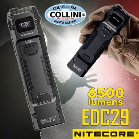 La NITECORE EDC29 LUMINBLADE è una torcia ultrapiatta e ad alte prestazioni progettata per l'uso quotidiano e tattico. Con una luminosità di 6.500 lumen e una portata di 400 metri, è la torcia tattica ultracompatta più potente della serie EDC. Il suo design sottile offre le prestazioni della serie TM, combinando un sistema a doppio LED con 18 core, che assicura un'illuminazione eccezionale e capacità a lungo raggio. Grazie alla tecnologia di controllo della luce, l'EDC29 dispone di tre modalità: LUMIN SHIELD™ per protezione e illuminazione ampia, STROBE per effetti disorientanti, e Modalità di Ricerca Tattica che emette un fascio da 3.000 lumen. Dotata di interruttori tattici a doppio stadio, permette di regolare facilmente le funzioni con pressioni leggere o complete. Il corpo resistente, con gusci in acciaio e composito in fibra di carbonio, garantisce presa sicura e durabilità. Leggera (160 g), è alimentata da una batteria integrata da 2.500 mAh che offre fino a 61 ore di autonomia,