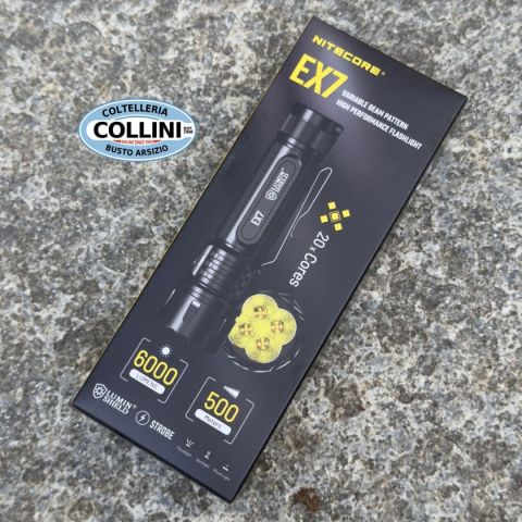 La EX7 offre fino a 6.000 lumen grazie ai suoi LED a 20 core e permette di scegliere tra tre modalità di fascio: Spotlight, Floodlight e Mixed Light. È la prima torcia al mondo ad utilizzare LED M515S a matrice a forma di X, che garantiscono maggiore efficienza, dissipazione ottimale del calore e qualità del fascio luminoso prodotto. Gli utenti possono personalizzare l’illuminazione su 4 livelli (LOW, MID, HIGH, TURBO), con funzioni avanzate come LUMIN SHIELD® da 6.000 lumen, modalità SEARCH con portata fino a 500m e modalità STROBE con frequenze randomiche per massimizzare gli effetti di disorientamento. Fornita già con una batteria ricaricabile 21700 da 20A, è dotata di ricarica tramite plug USB-C, tappo posteriore magnetico, clip reversibile e certificazione di impermeabilità IP68 e resistenza agli urti fino a 2m: prestazioni di livello superiore in ogni condizione. DATI TECNICILed: 4 x LED M515S a 5 Core (20 in tutto) con matrice a forma di X, con ciclo vitale di oltre