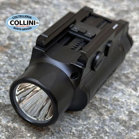 Caratteristiche Chiave * Potenza massima di 2.000 lumen* Gittata massima di 412 metri e intensità di picco del fascio luminoso di 42.500cd* Sistema ottico combinato con rivestimento in cristallo e "Precision Digital Optics Technology" (PDOT)* Alimentata da una batteria agli ioni di litio (1.900 mAh) con porta di ricarica USB-C* Modalità STROBE con frequenze variabili per effetti vertiginosi più efficaci* Modalità di blocco disponibile, per prevenire l'attivazione accidentale* Design compatto e leggero, ideale per il trasporto* Modulo di regolazione avanzata della temperatura (ATR) incorporato (brevetto n. ZL201510534543.6)* Design a prova di rinculo* Design ambidestro, a doppio pulsante* Il circuito a corrente costante altamente efficiente fornisce un'uscita stabile della luce* Costruita in lega di alluminio aeronautico con finitura anodizzata militare HA III.* Grado di impermeabilità e resistenza alla polvere secondo gli standard IPX6* Resistente agli urti fino a 2 metri Sistema di mo